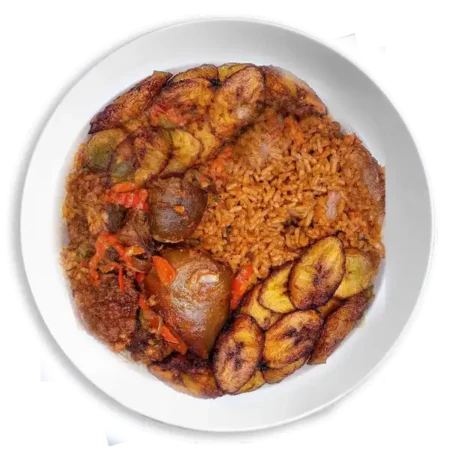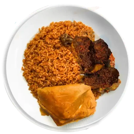 Jollof Rice, a vibrant West African dish, combines perfectly cooked rice with tomatoes,Select options This product has multiple variants. The options may be chosen on the product page $14.99 – $16.99 -