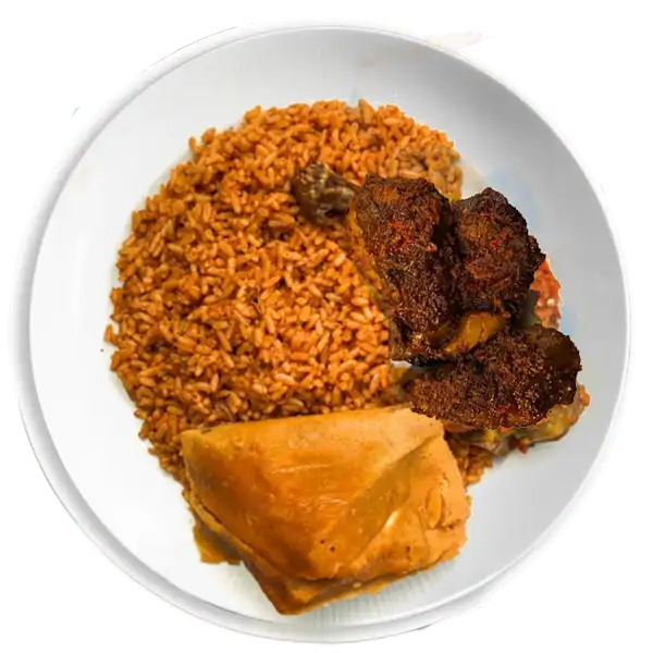 Jollof Rice with Moimoi and Beef is a classic West African meal that